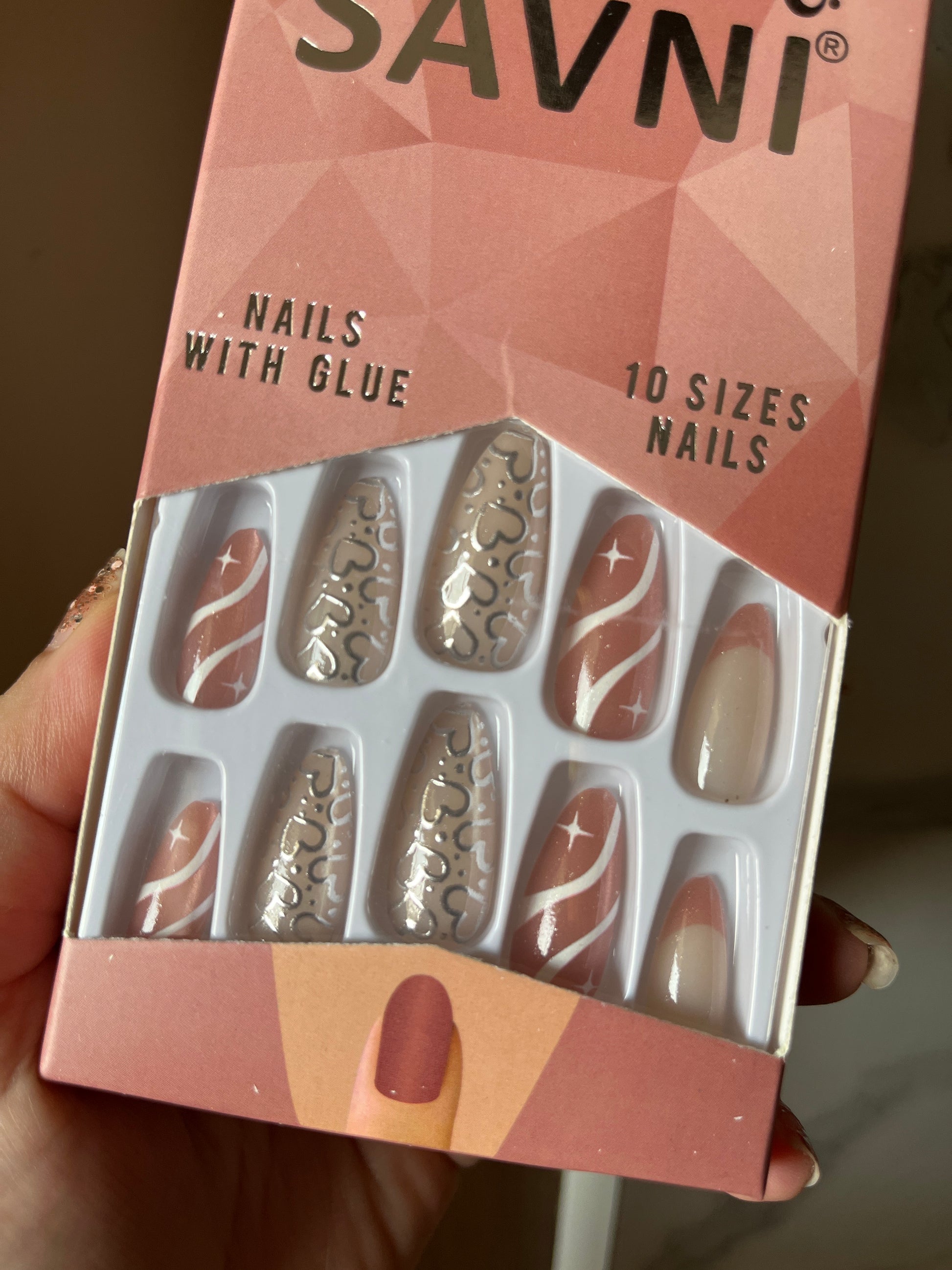 Silver heart cat eye nails