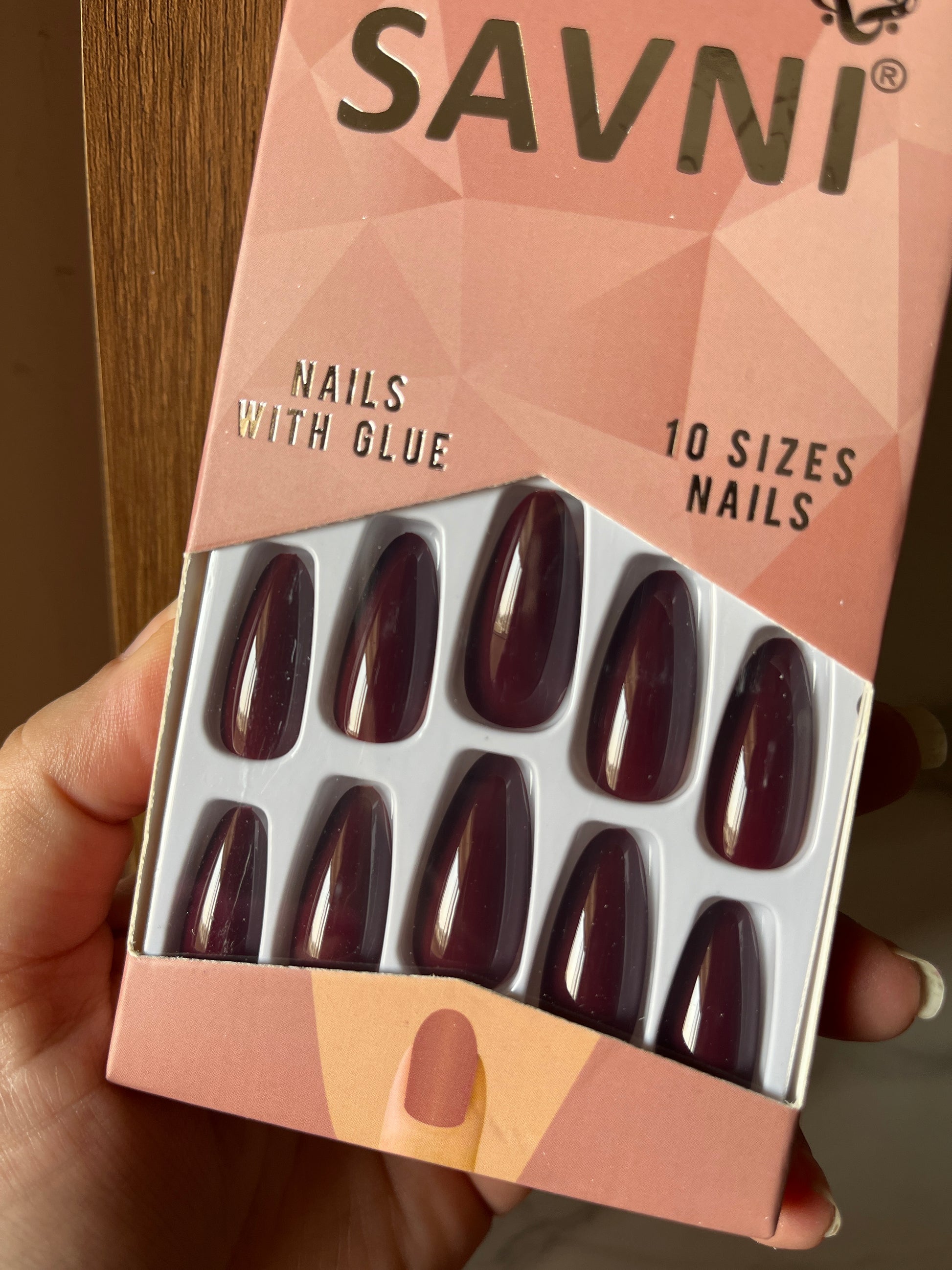 Wine brown gloss nails with tabs